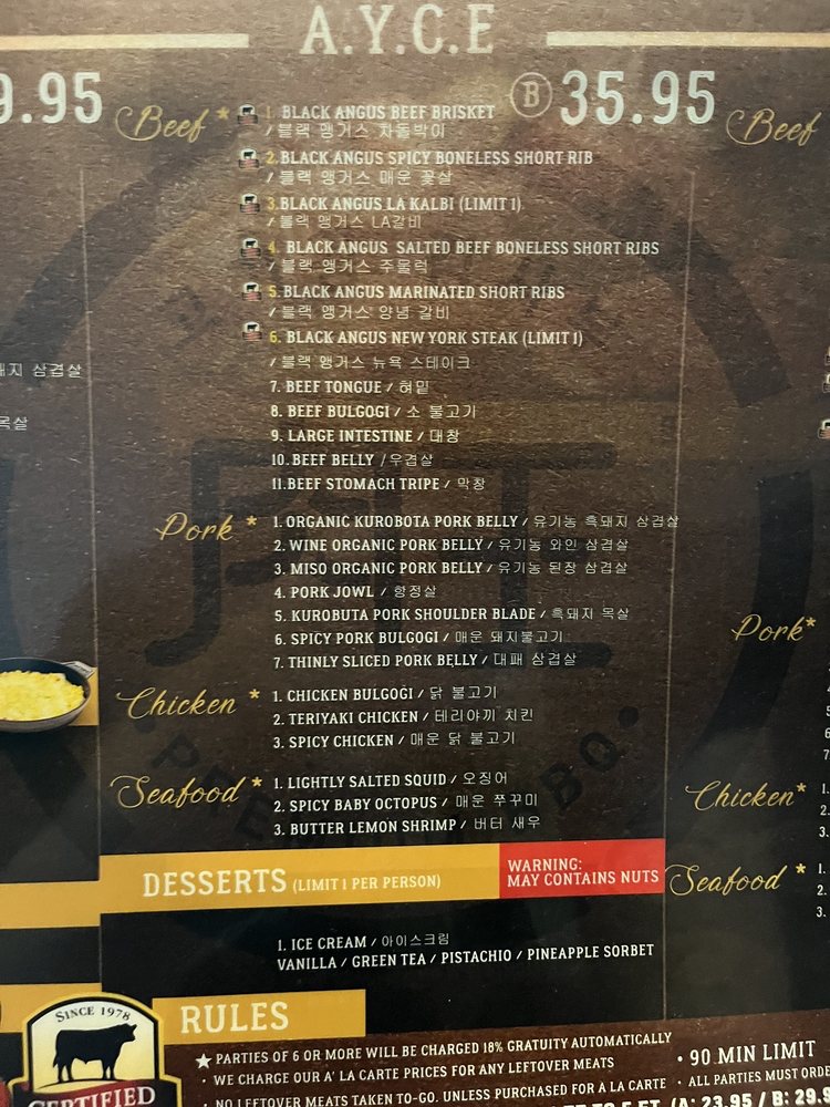 Introducing the menu at Master Kim’s Korean BBQ 2 is a delightful experience for food enthusiasts. This trendy and casual restaurant, located in Las Vegas, offers a wide range of options for diners. From taking reservations to providing vegan-friendly dishes, this establishment caters to a diverse group of patrons. The highlight of the menu includes flavorful meats like brisket and pork jowls, accompanied by plentiful side dishes. Customer reviews rave about the top-notch ventilation system, attentive staff, and the unique experience of being greeted by a robot hostess. With a focus on quality, variety, and great value, Master Kim’s Korean BBQ 2 is a must-visit for those looking for an unforgettable dining experience.
